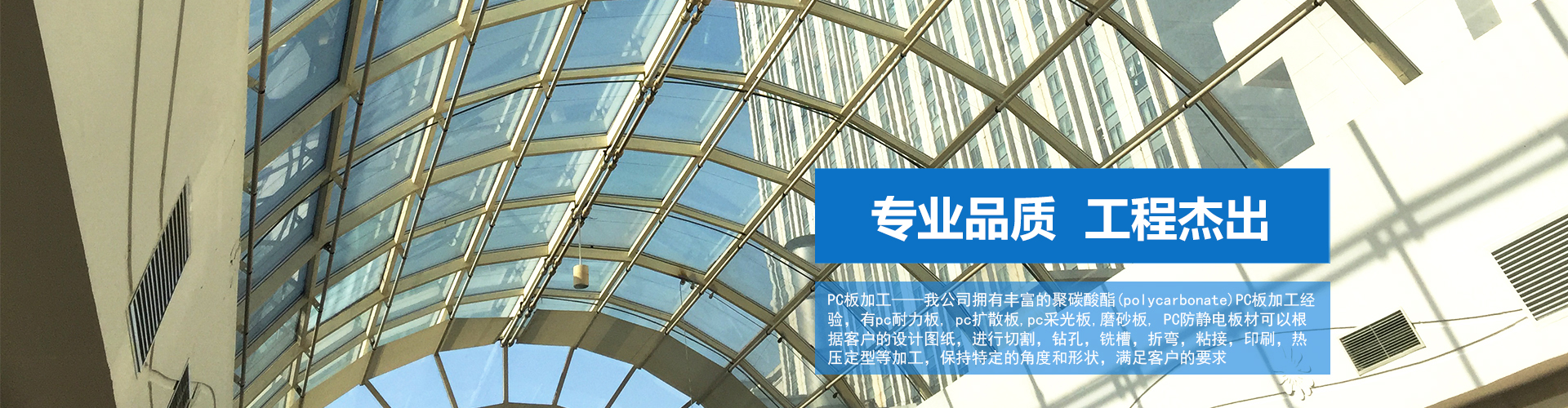 公司擁有兩條進(jìn)口陽(yáng)光板生產(chǎn)設(shè)備(雙層陽(yáng)光板;三層陽(yáng)光板;四層陽(yáng)光板;蜂窩陽(yáng)光板;米字陽(yáng)光板;晶亮陽(yáng)光板);一條進(jìn)口PC實(shí)心板生產(chǎn)設(shè)備9(PC平板;鉆石顆粒板;顆粒板;磨砂板;光擴(kuò)散PC板;導(dǎo)光板)...